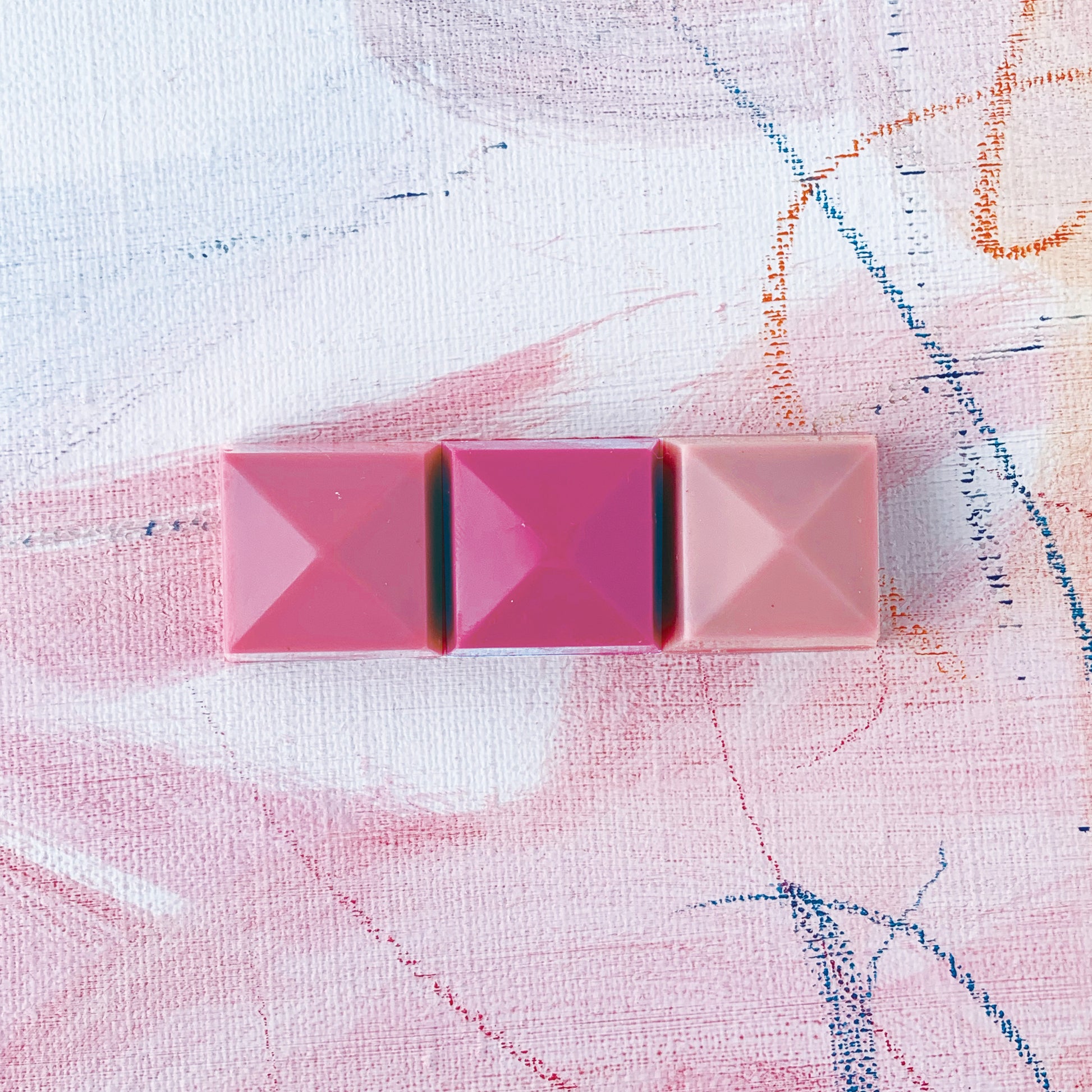 ローズ風味のガナッシュをローズカラーのホワイトチョコレートでコーティング。
