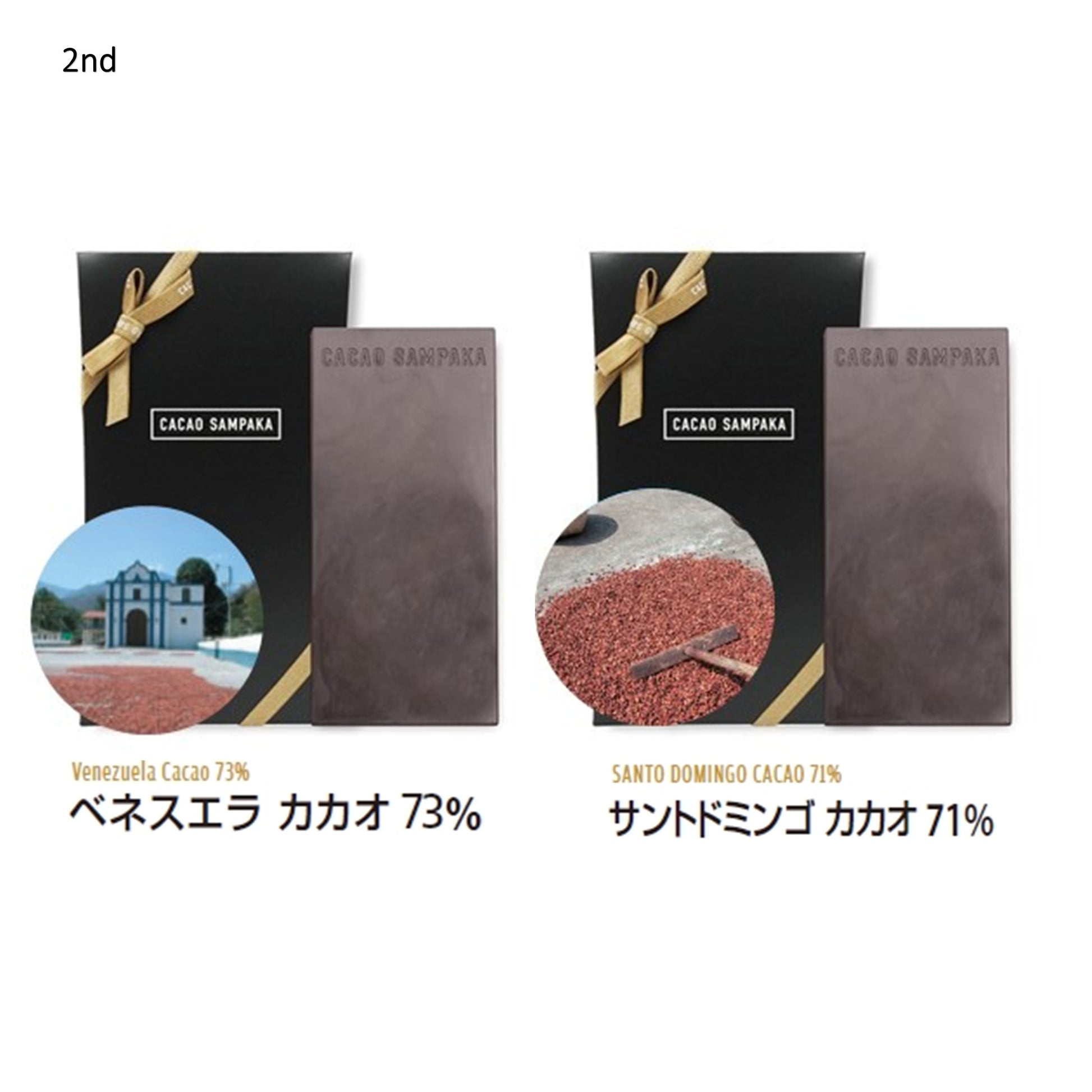 ボンボン1個は約7~8.5g、サイズは2cm~3cm前後、ラジョラス(板チョコレート)は約7cm× 14.5cm、重さ約45gですが、カカオサンパカのチョコレートは熟練した職人の手作業によって1つ1 つ丁寧に作られています。そのため形状や重さが多少異なりますので、予めご了承下さい。