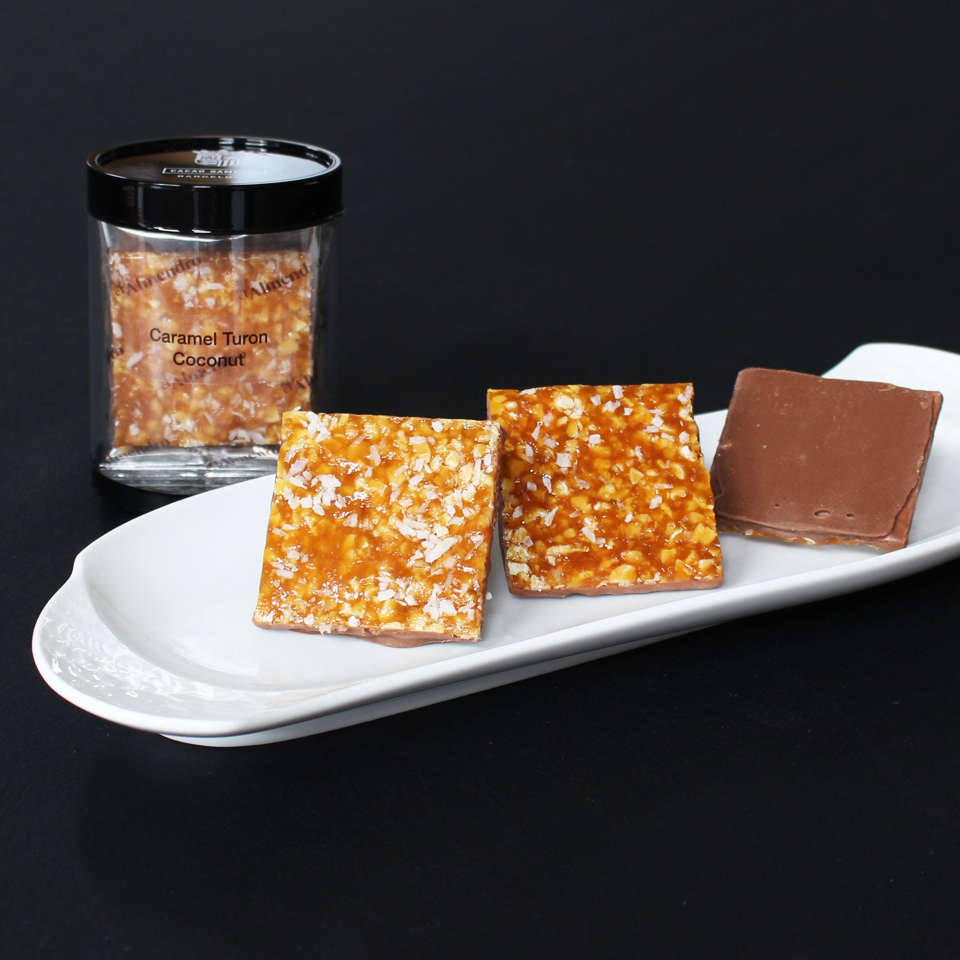ミルクチョコレートベースにココナッツシュレッドを練りこんだスペインの伝統菓子トゥロン。